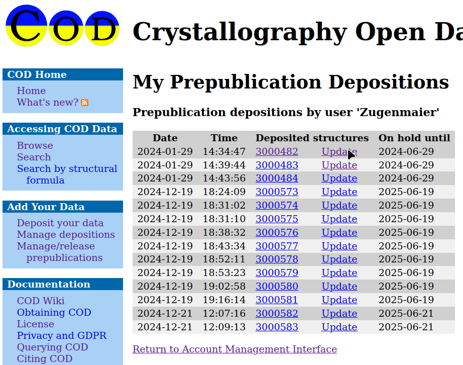 https://www.crystallography.net/cod/my_depositions.php?filter=prepublications