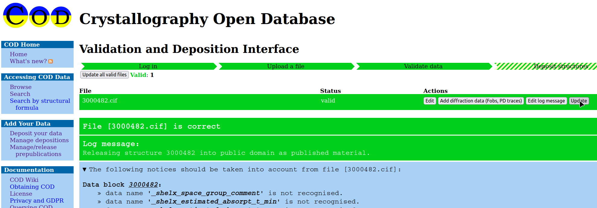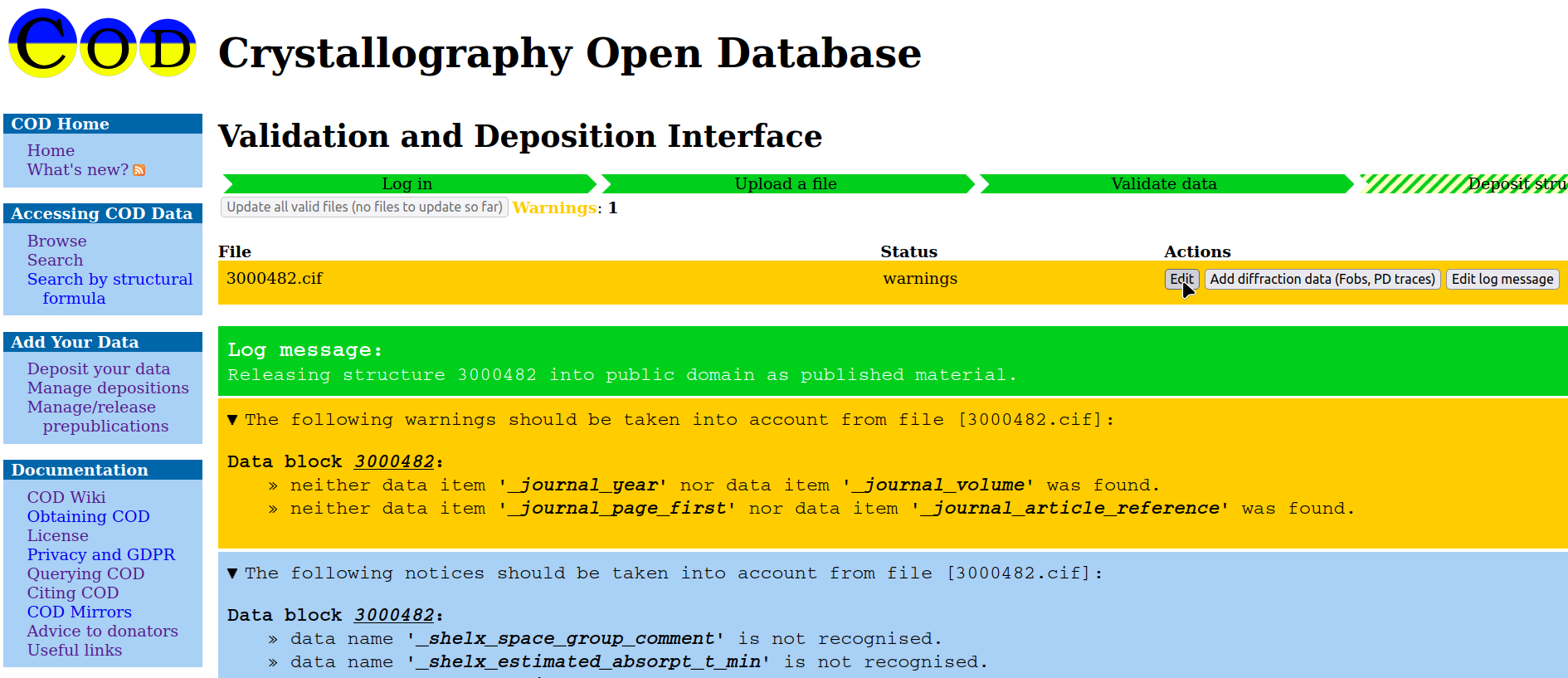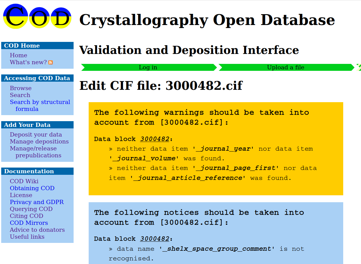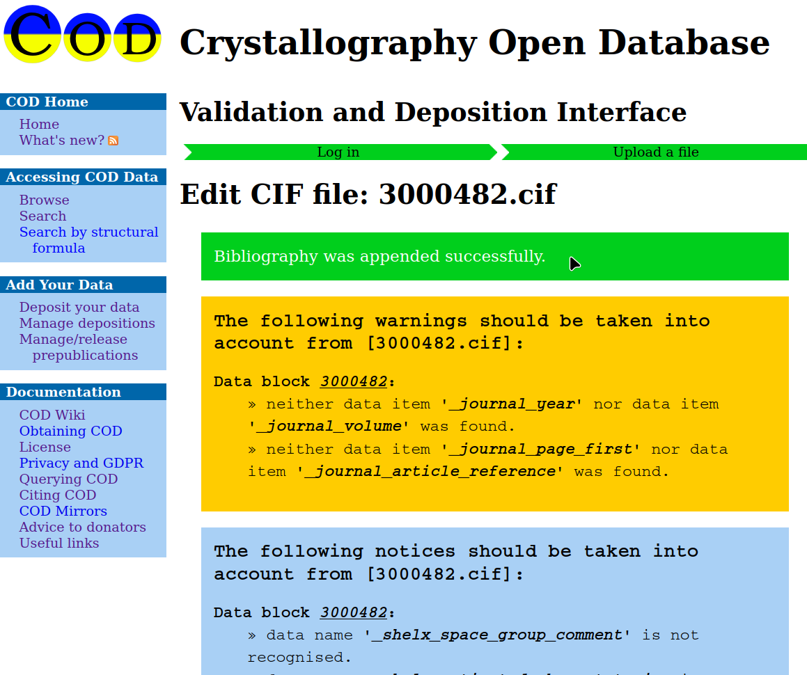 4. After the COD server checks the structure (it may take some while)